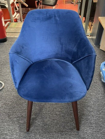 Blue Velvet Wooden Leg Tub Chair