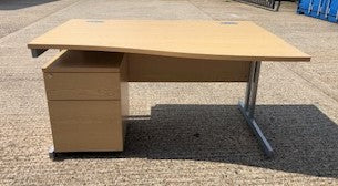 Oak Wave Desk with Matching 2 Draw Pedestal