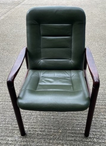 Green Leather & Dark Wood Chair